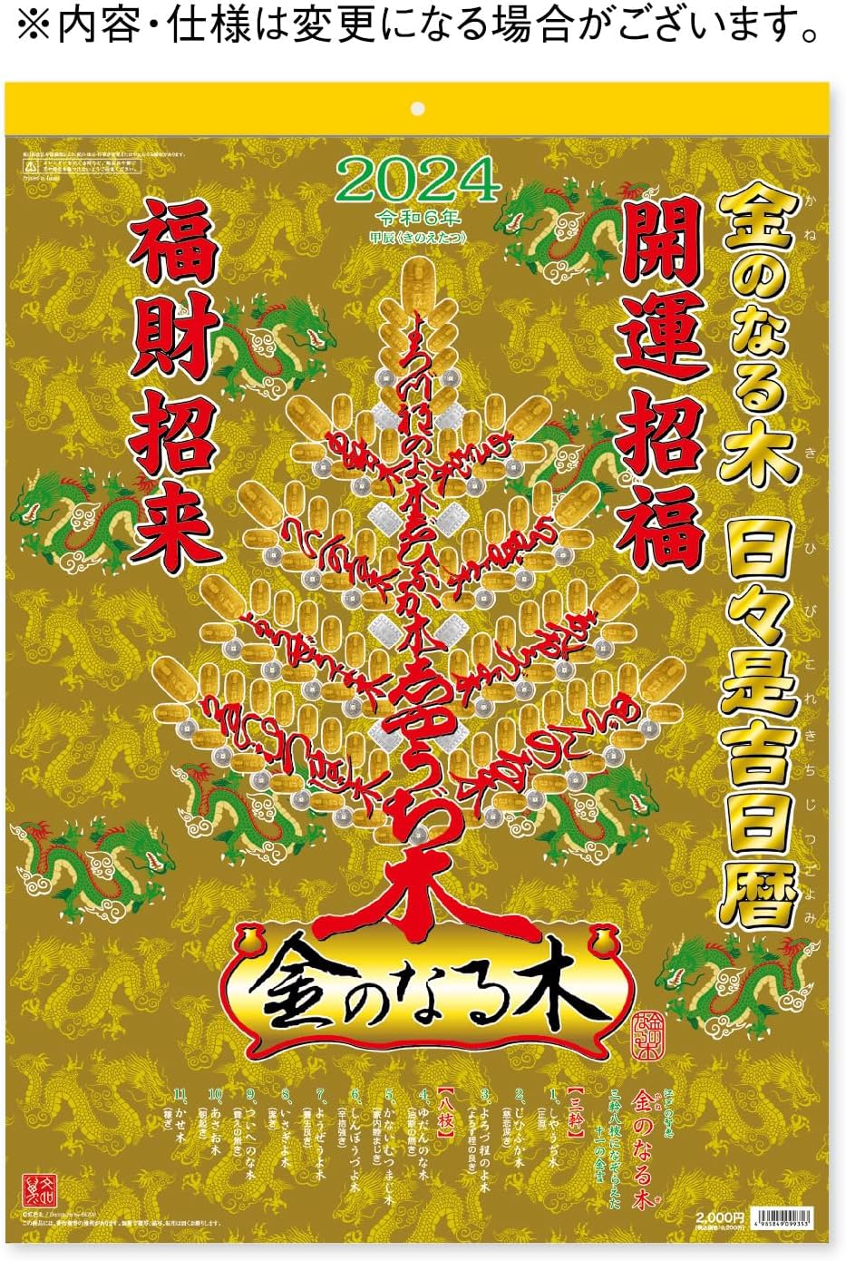 Source : www.amazon.comNew Japan Calendar 2024 Wall Calendar Money Tree CL24 0658